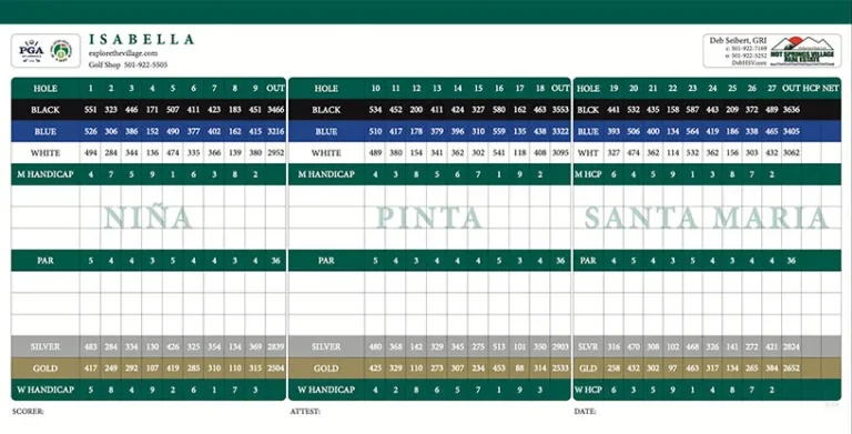 Isabella offers variety and challenge with three distinct 9-hole rotations—Nina, Pinta, and Santa Maria. Each provides a unique mix of rolling fairways, water features, and strategically placed bunkers. From the wide-open landing areas of Pinta to the tighter, more technical holes of Nina, Isabella keeps golfers on their toes while showcasing the natural beauty of the Village landscape.